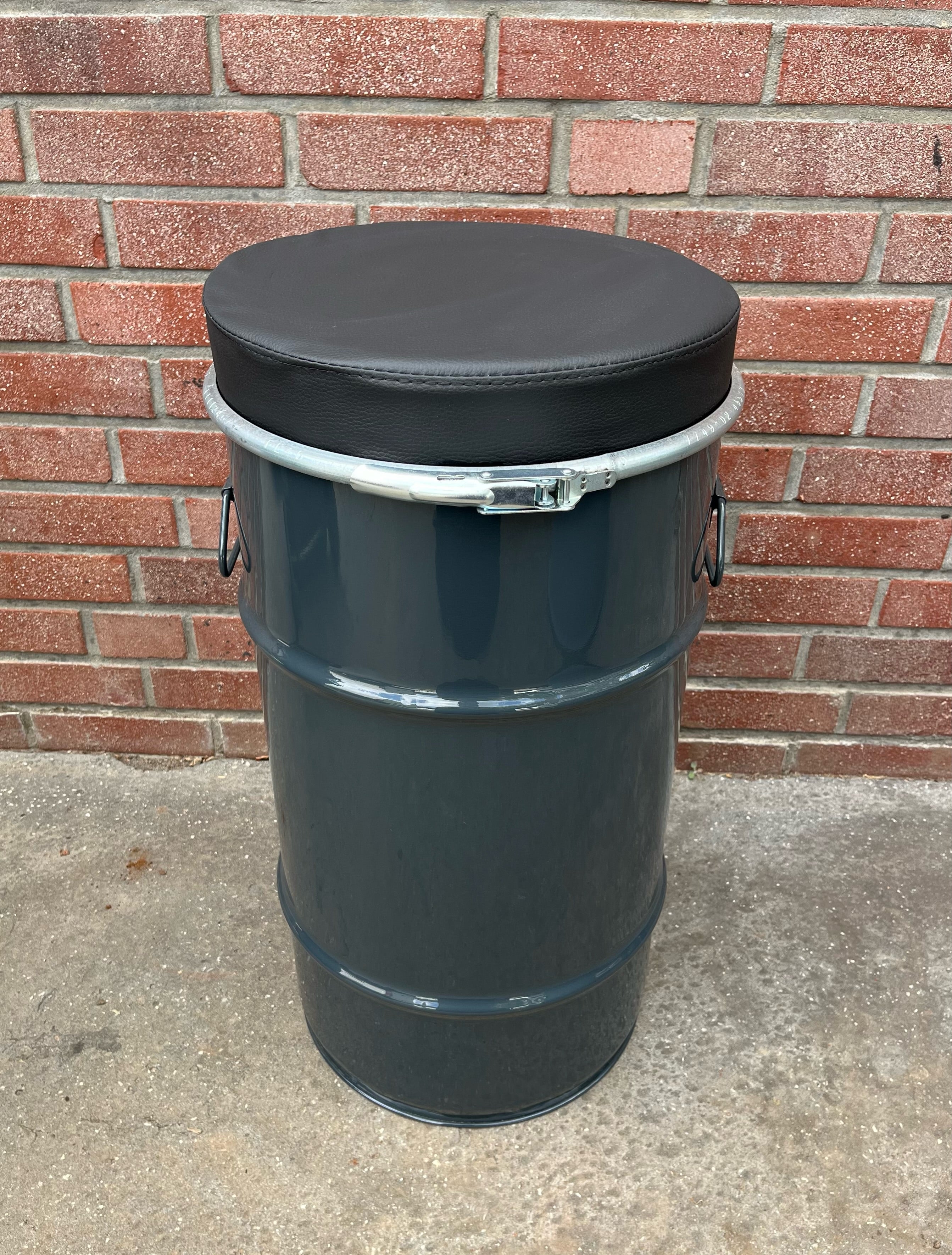 Unsere Ölfass-Hocker, hergestellt aus neuen Ölfässern, zeichnen sich durch außergewöhnliche Stabilität und Langlebigkeit aus. Jedes Fass wird