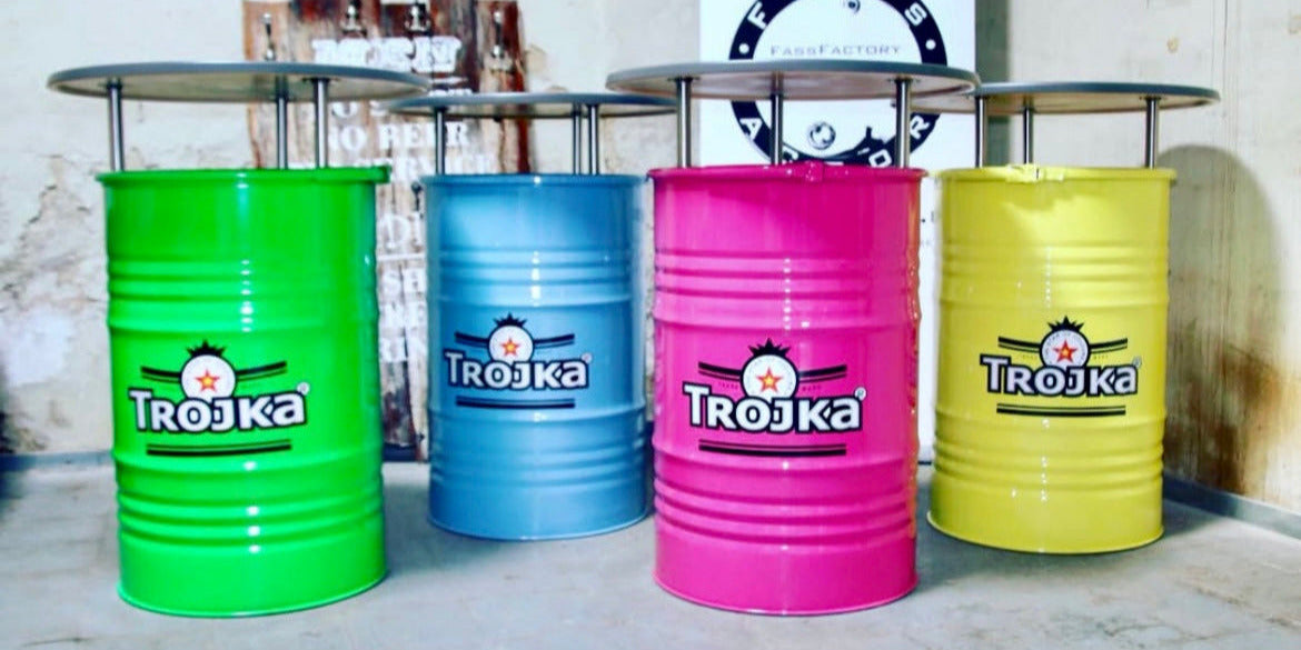 Unsere Ölfass-Möbel kannst du individuell gestalten, zum Beispiel mit deinem Logo oder einer Banderole. Damit verleihst du deiner Veranstaltung eine persönliche Note, stärkst deine Marke und schaffst einen einzigartigen Eindruck. So wird dein Event professionell und unvergesslich – wir unterstützen dich gerne bei der Umsetzung deiner Ideen!